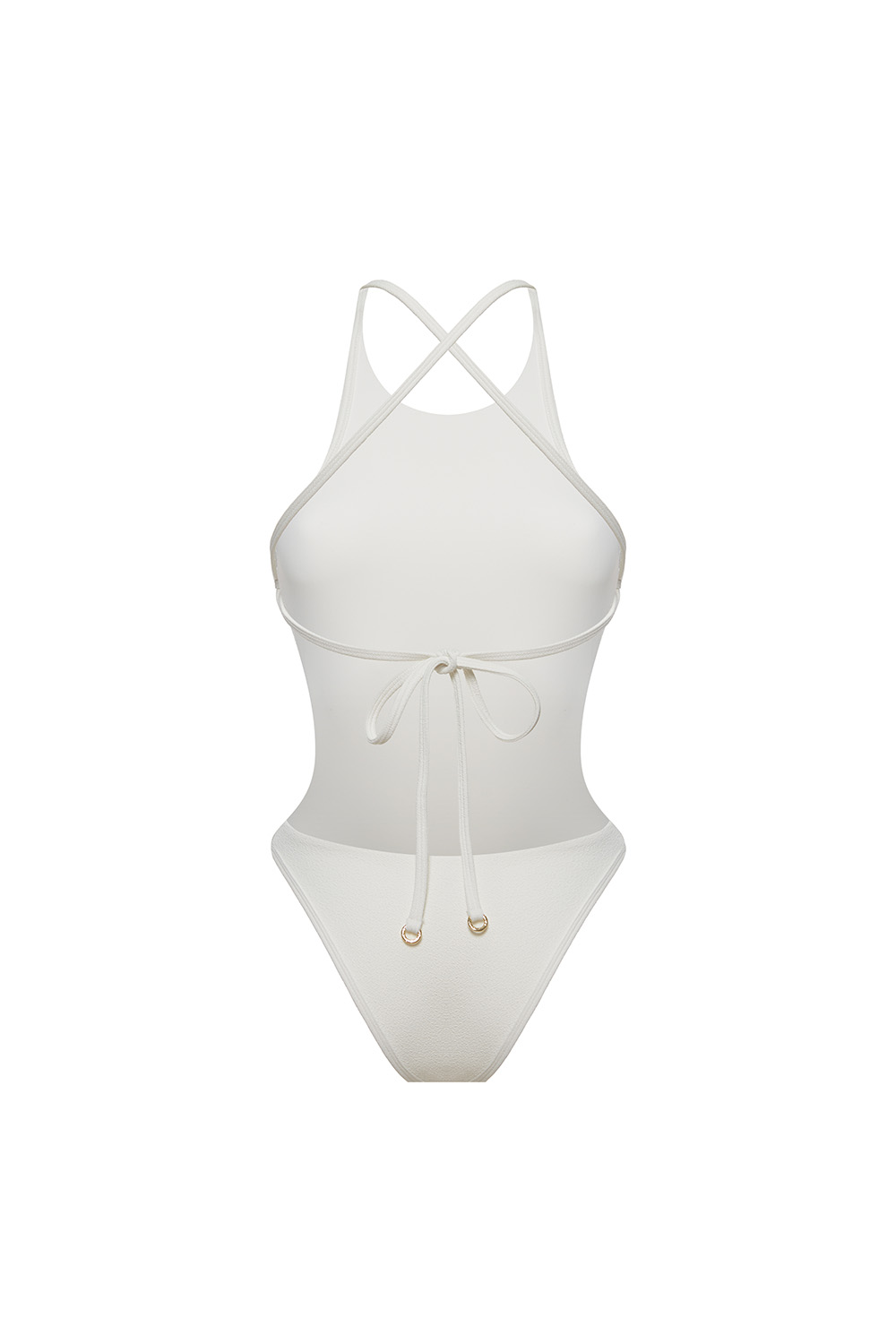 Слитный купальник с открытой спиной. Не имеет съёмных чаш.