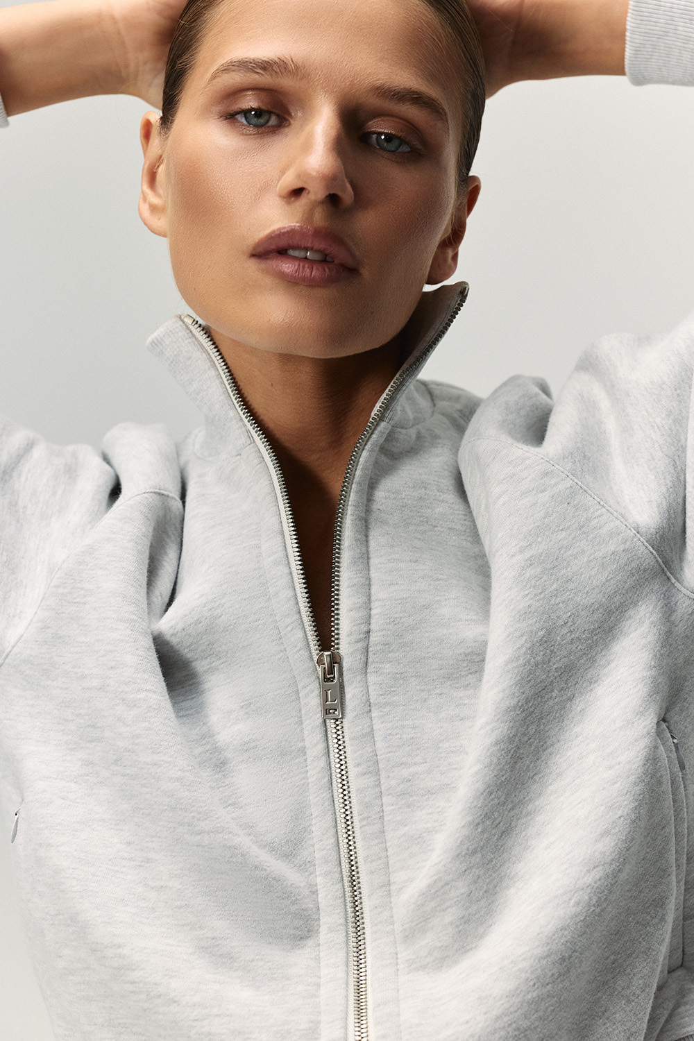 Олимпийка из утеплённого футера.. Модель с карманами на молнии и рукавом реглан.