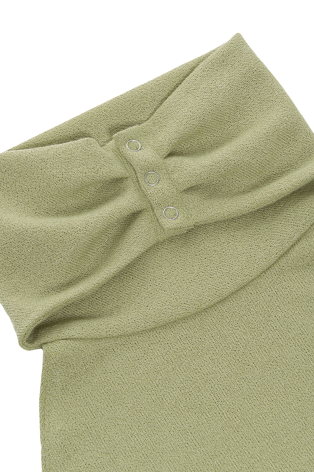 Пляжное платье с открытой спиной и высоким горлом на застёжках-кнопках. Драпировка на бёдрах зрительно моделирует. Длина платья варьируется от вашего желания - от мини до длины ниже колен.