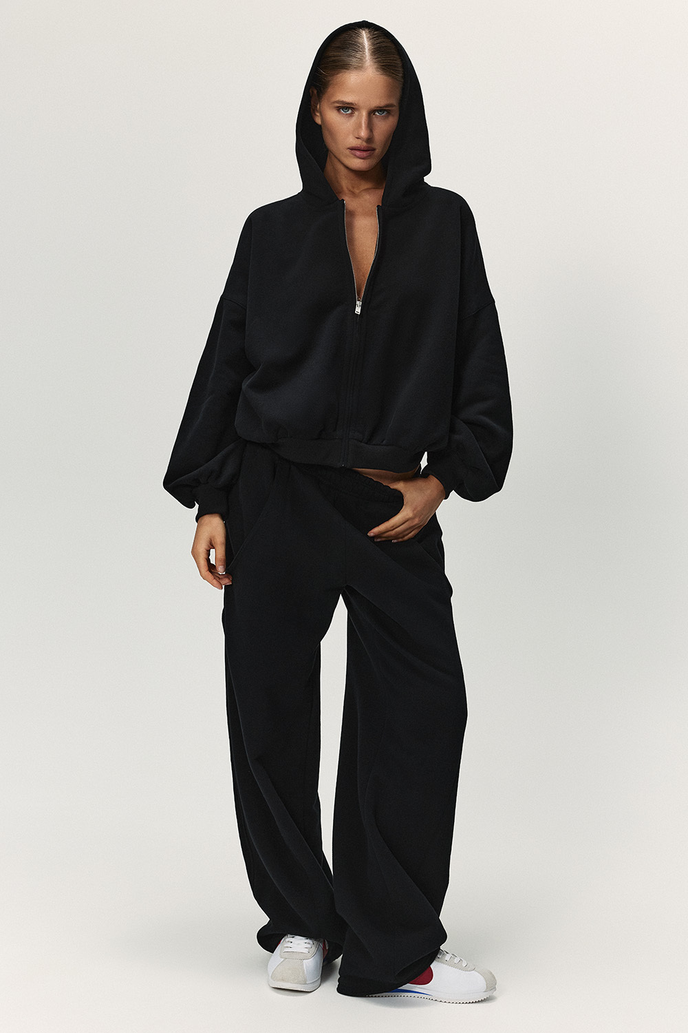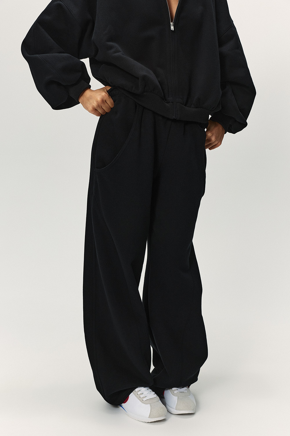 Штаны багги свободного кроя из утеплённого футера с резинкой на талии и двумя карманами.
