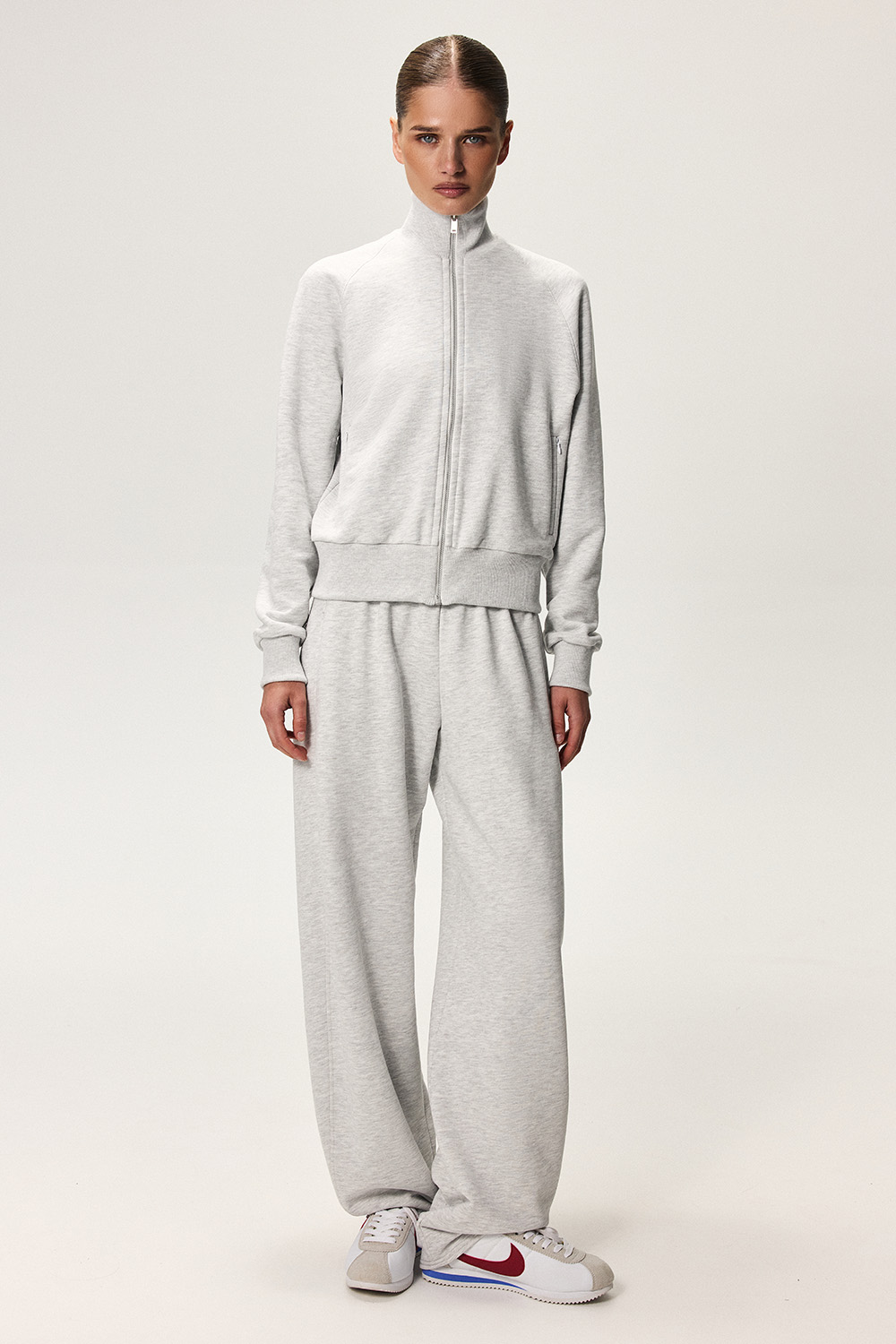 Свободные в бёдрах и зауженные к низу штаны из футера с боковыми карманами.