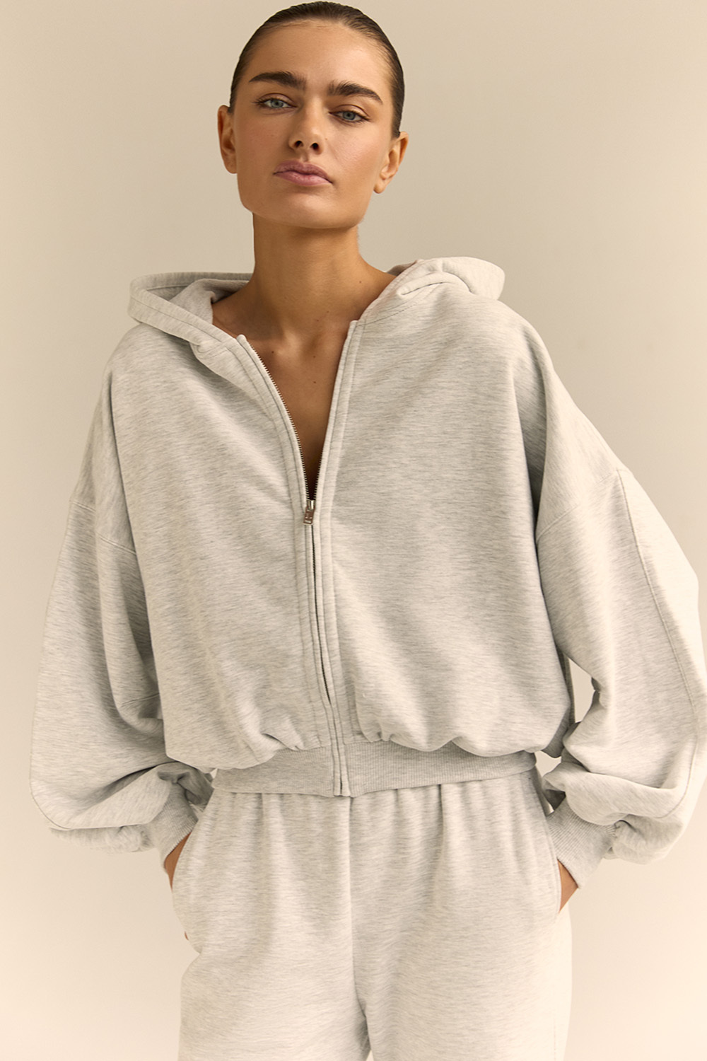 Минималистичная толстовка из утеплённого футера на молнии с капюшоном. Благодаря резинке по низу вы можете регулировать посадку изделия. Модель с двумя прорезными карманами и рукавом реглан.