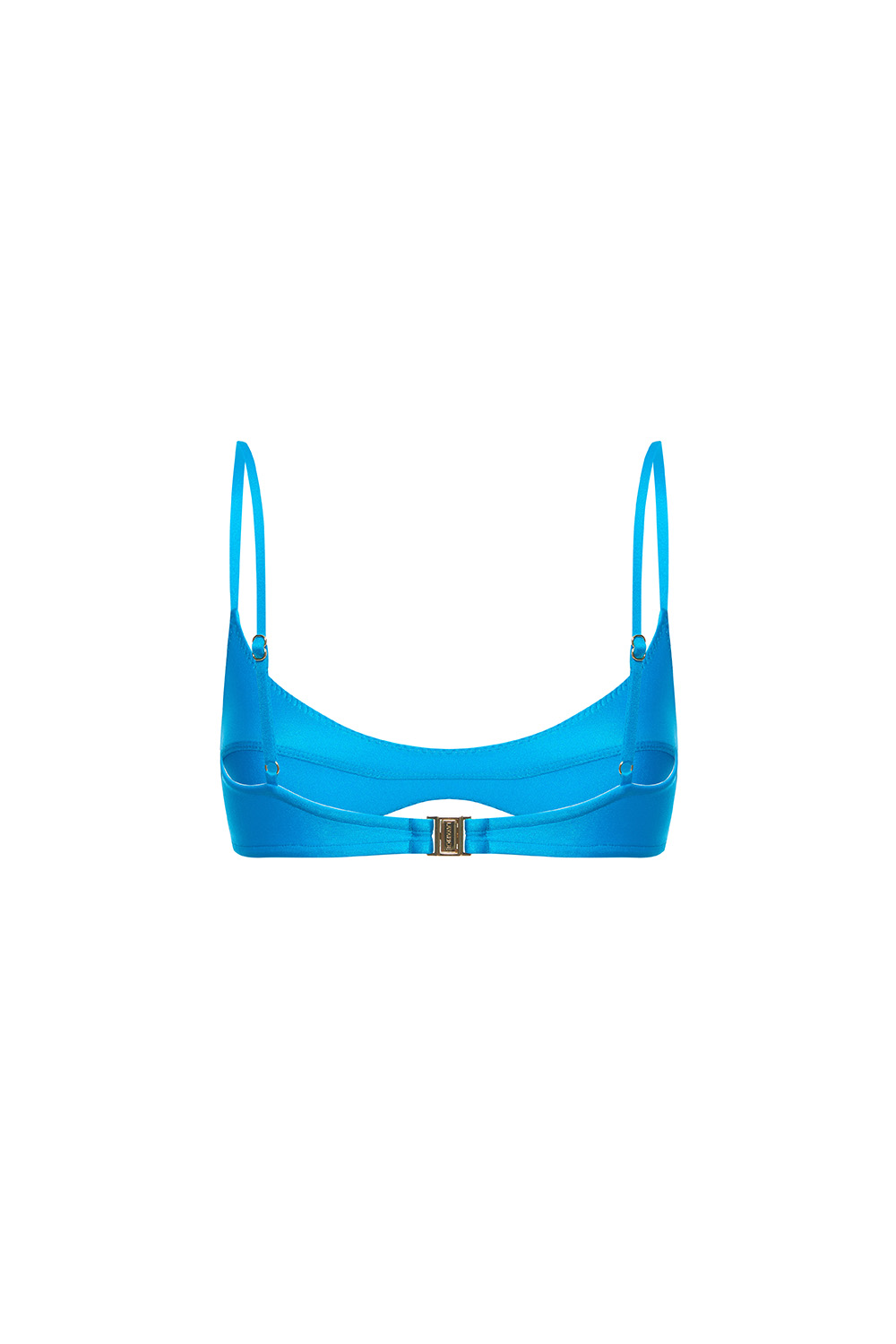 Верх купальника на регулируемых бретелях с металлической застежкой сзади. Не имеет съёмных чаш.